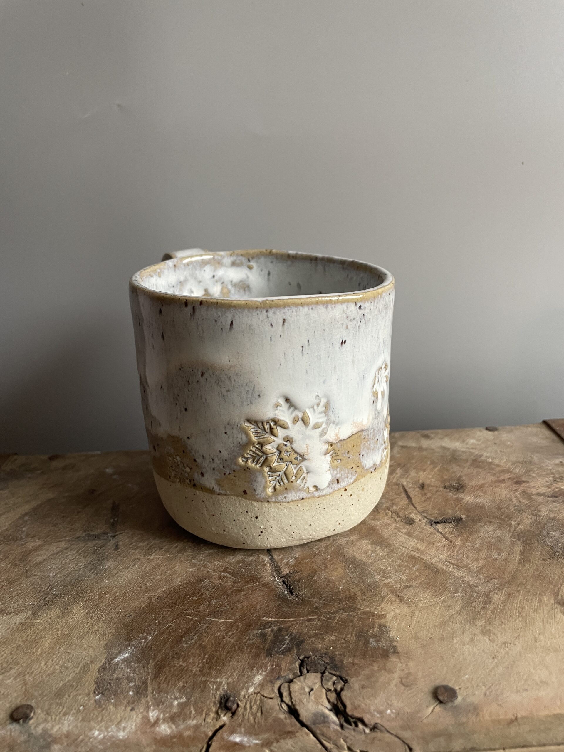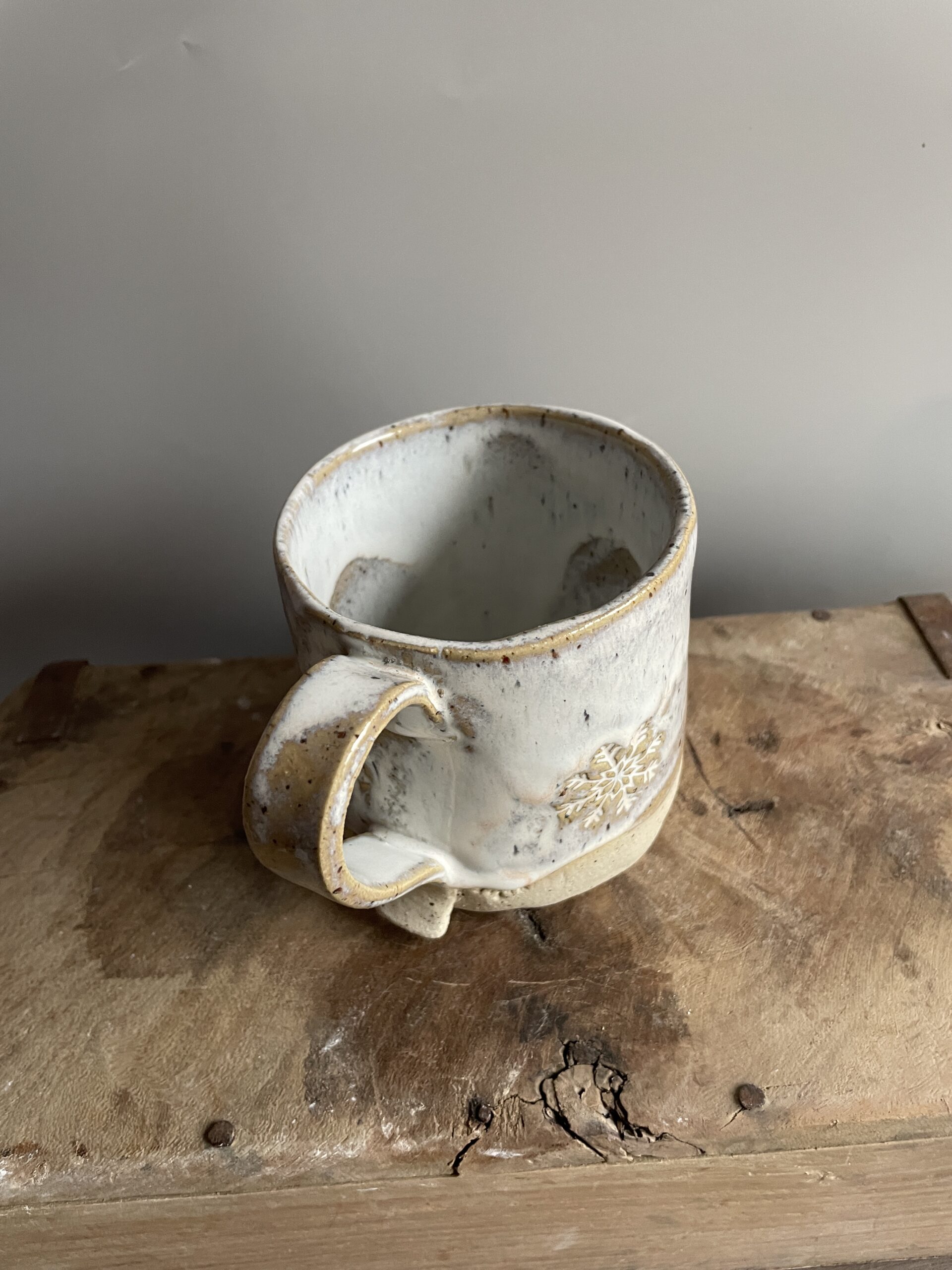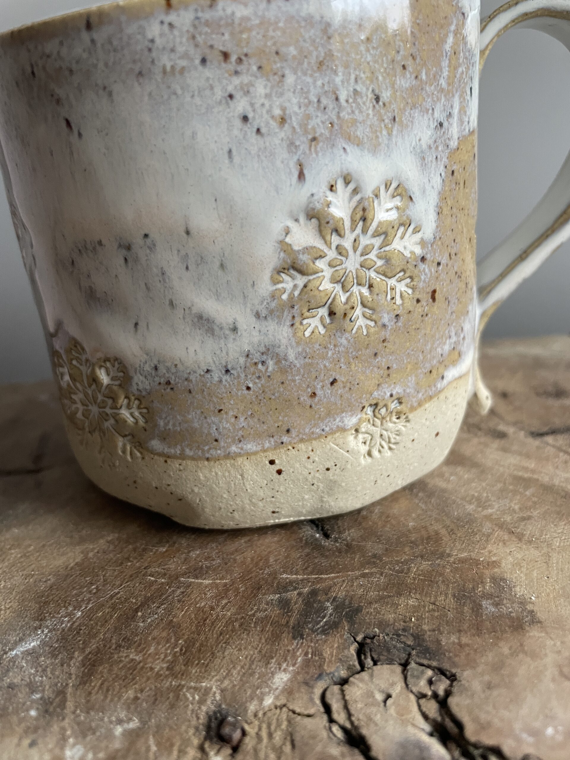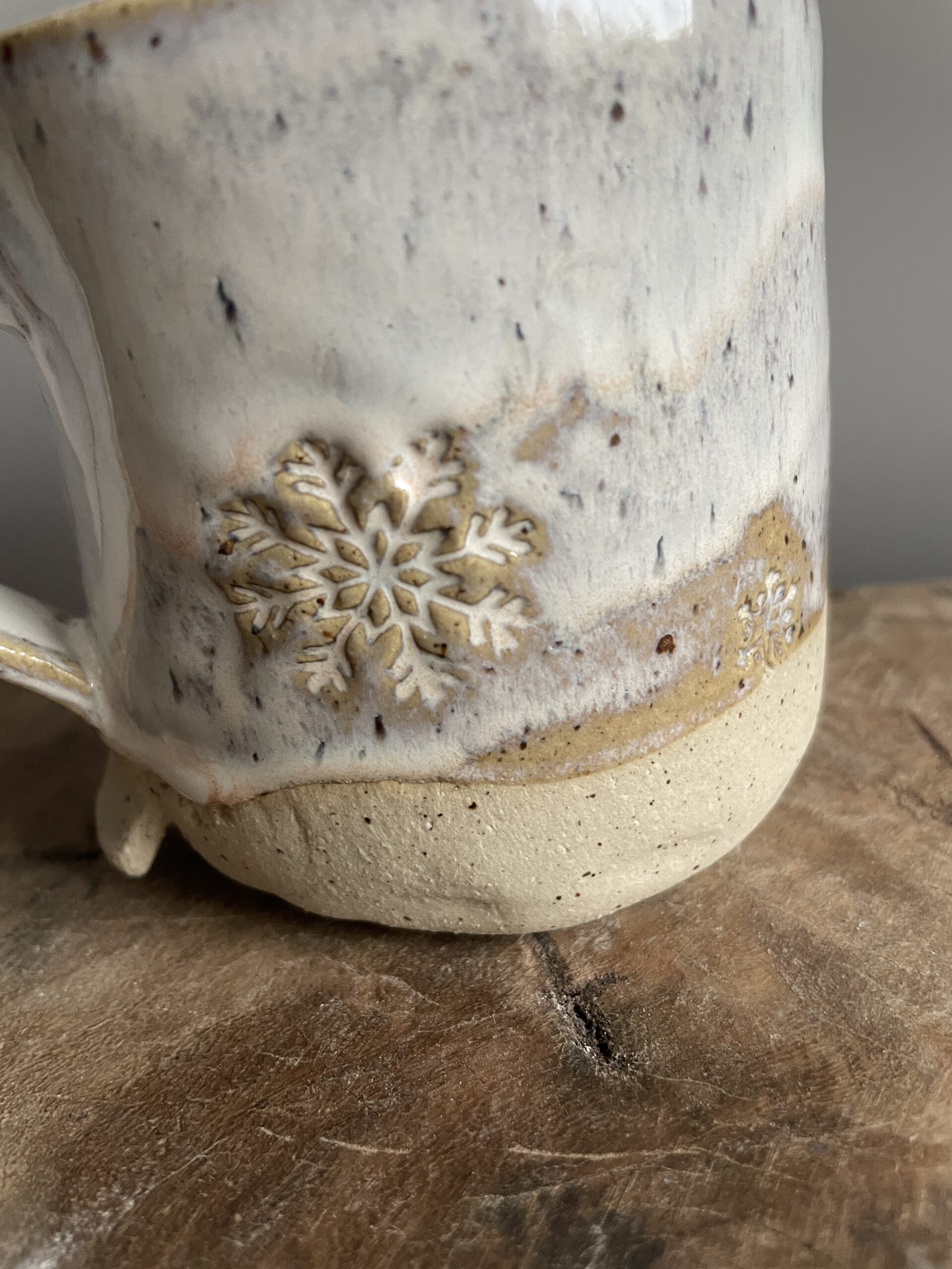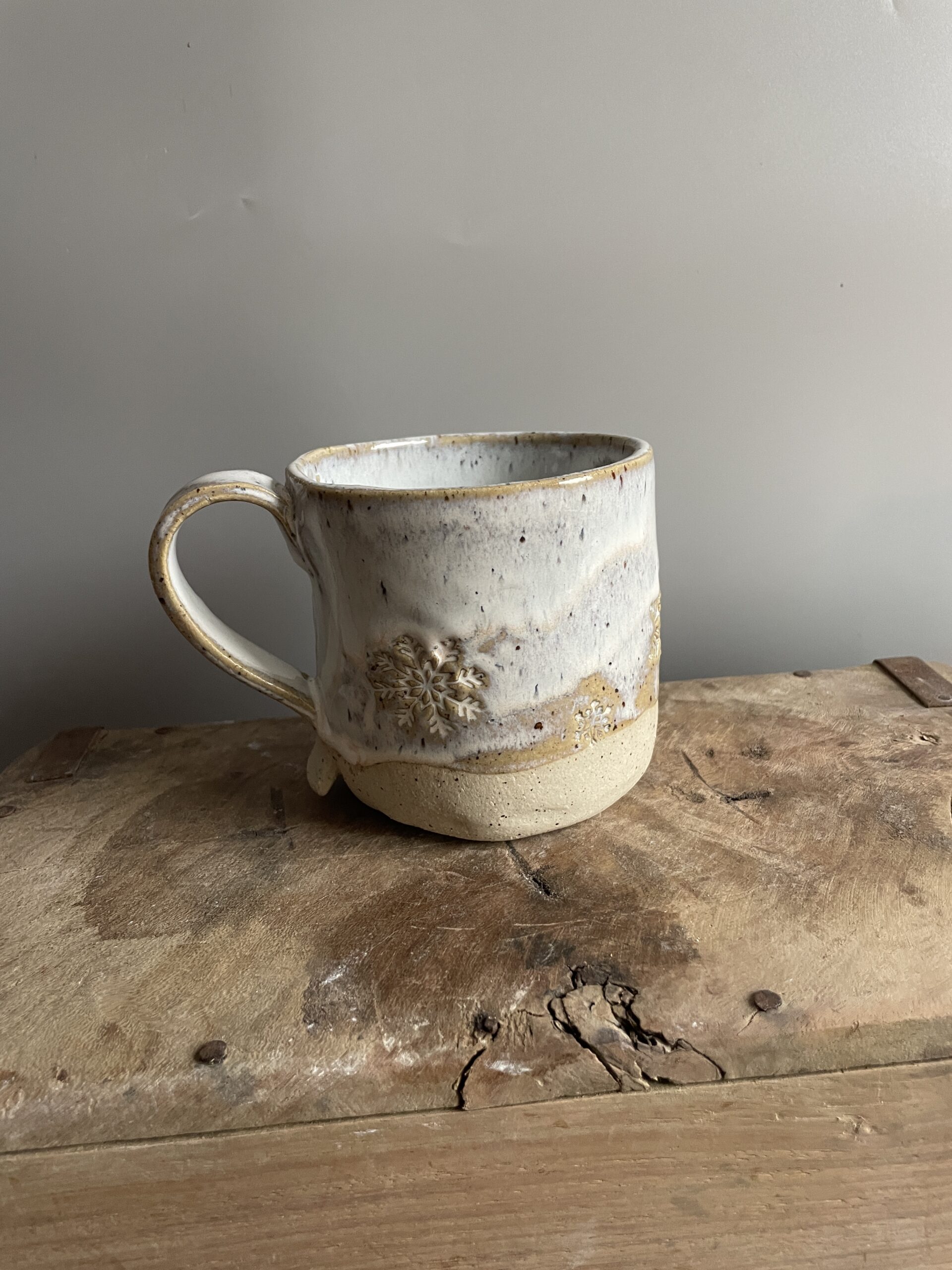 Handgemachte Wintertasse mit Schneeflocken-Motiv