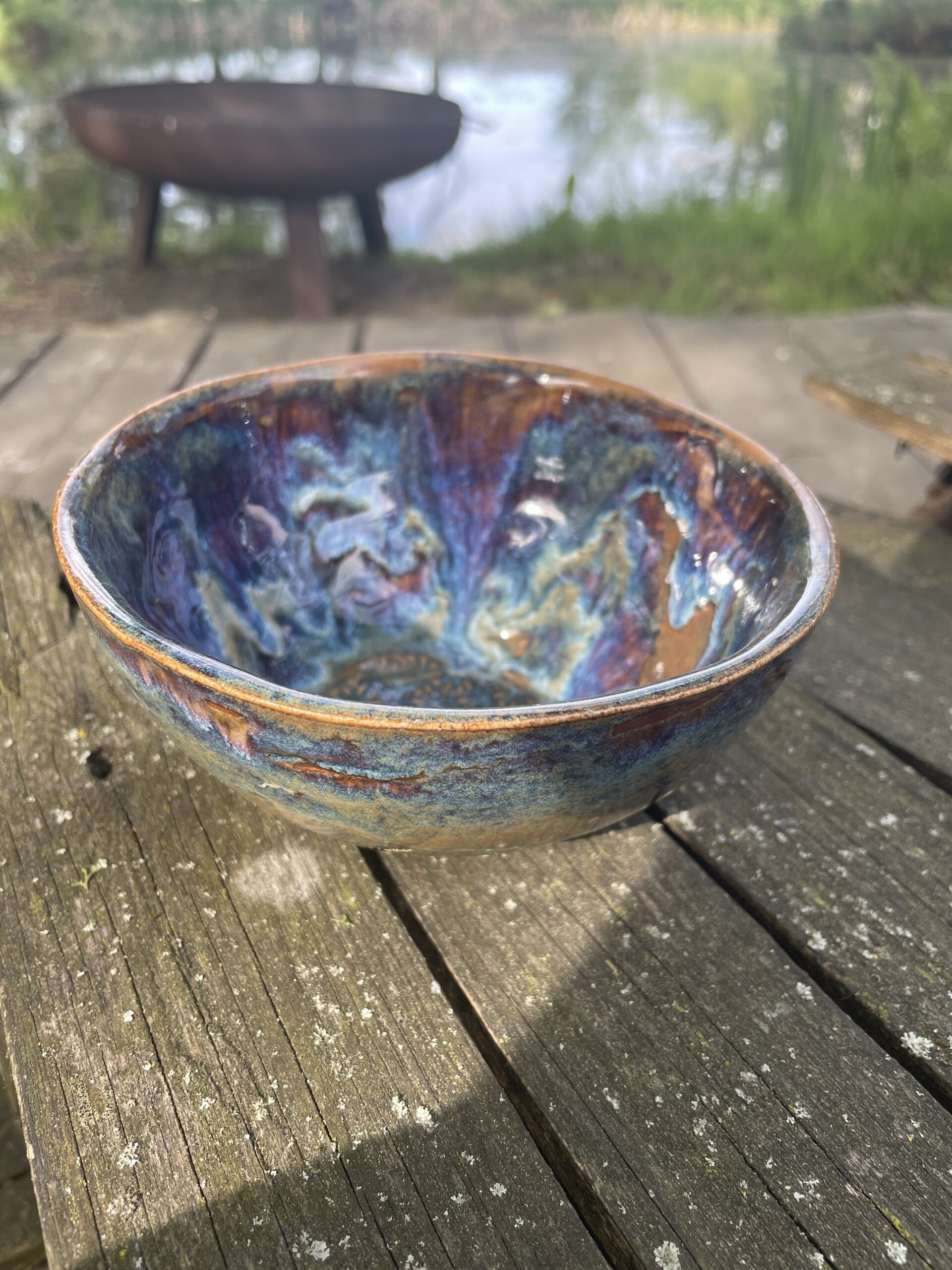 Die Keramikschale besteht aus hochwertiger Keramik. Da ich sie bei über 1200 grad brenne ist sie komplett wasserdicht. Außerdem frostfest, Geschirrspüler und für Lebensmittel geeignet.
