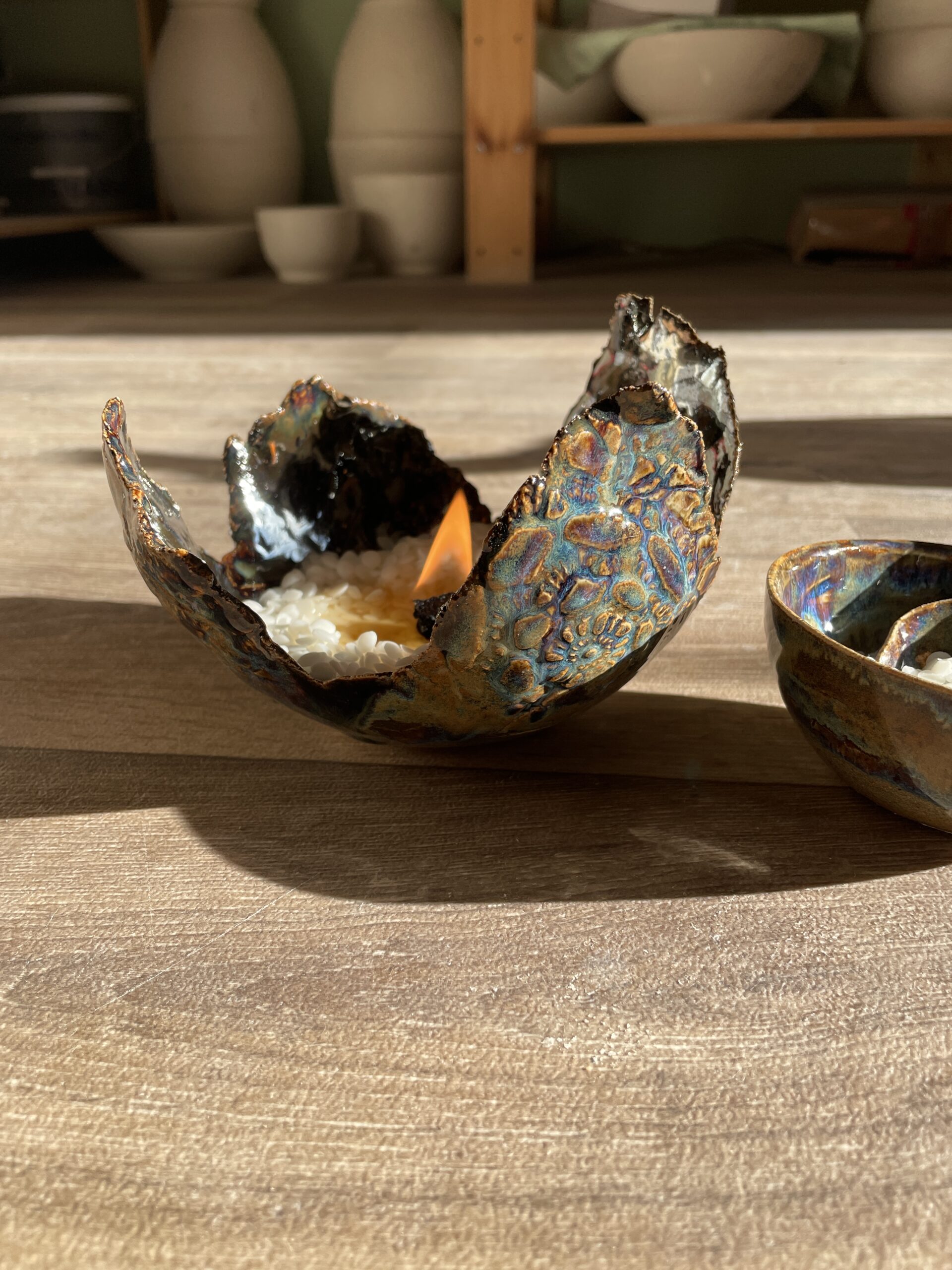 Verwandle deine Kerzenreste in ein neues, stimmungsvolles Licht mit diesem handgetöpferten Wachsfresser outdoor aus hochwertiger, hitzebeständiger Keramik. Dank seiner einzigartigen Farbverläufe und des besonderen Designs wird er nicht nur zum Blickfang, sondern hilft dir auch, Kerzenreste nachhaltig zu recyceln.